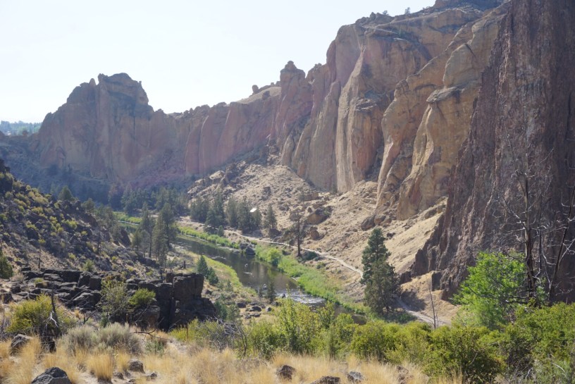 私のテンションも上がった所でサンリバーとは逆、ベンドから30分ほど北にありますレドモンドという所に行きました。こちらにはスミスロックという大きな岩山があります。