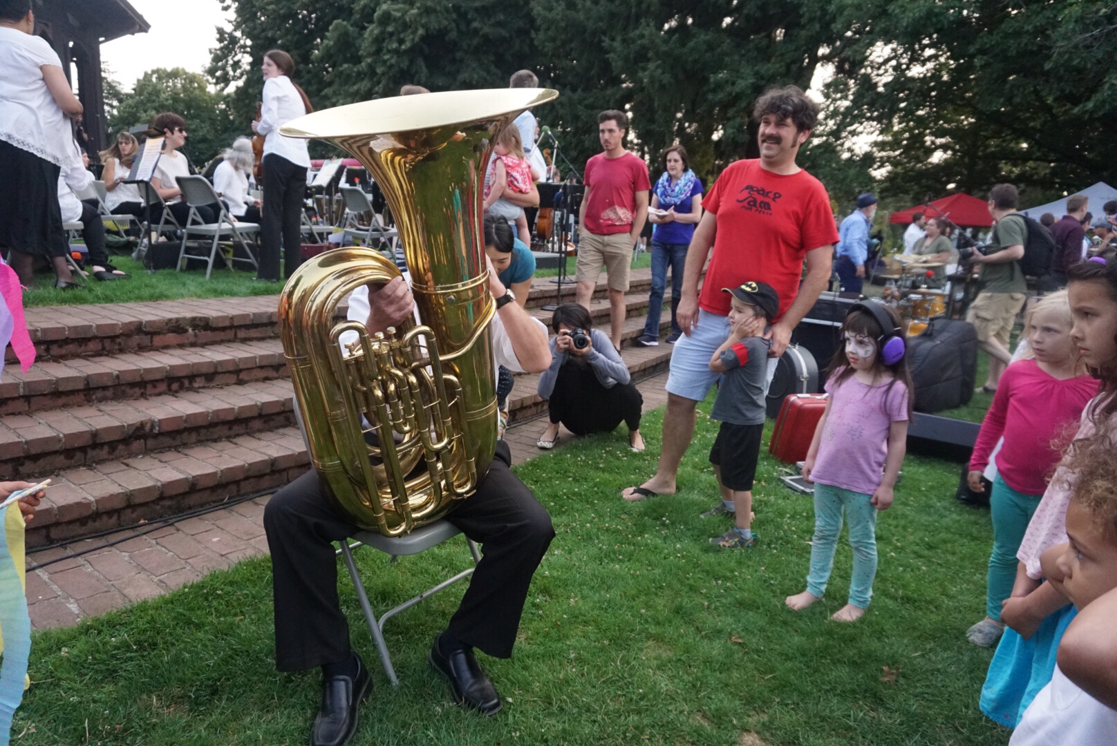 前置きが長くなりましたが、ポートランドのペニンシュラ公園(参照:ユニークな遊具のあるポートランドの公園ベスト3)にて、オレゴン交響楽団の演奏がありました。この街の子どもへのやさしさを象徴したイベントでした。
