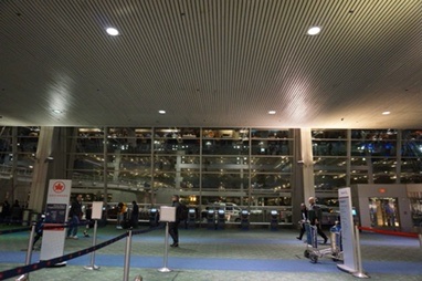 他のお客さんはまだロビーに座っていて、フライトを待っている様子。