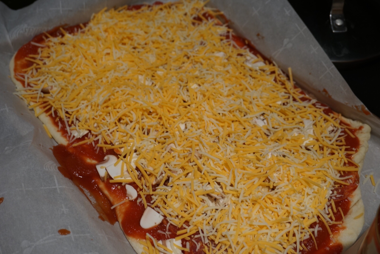 これまた息子のアドバイス通り、ペパロニとチーズをふんだんに使いました。