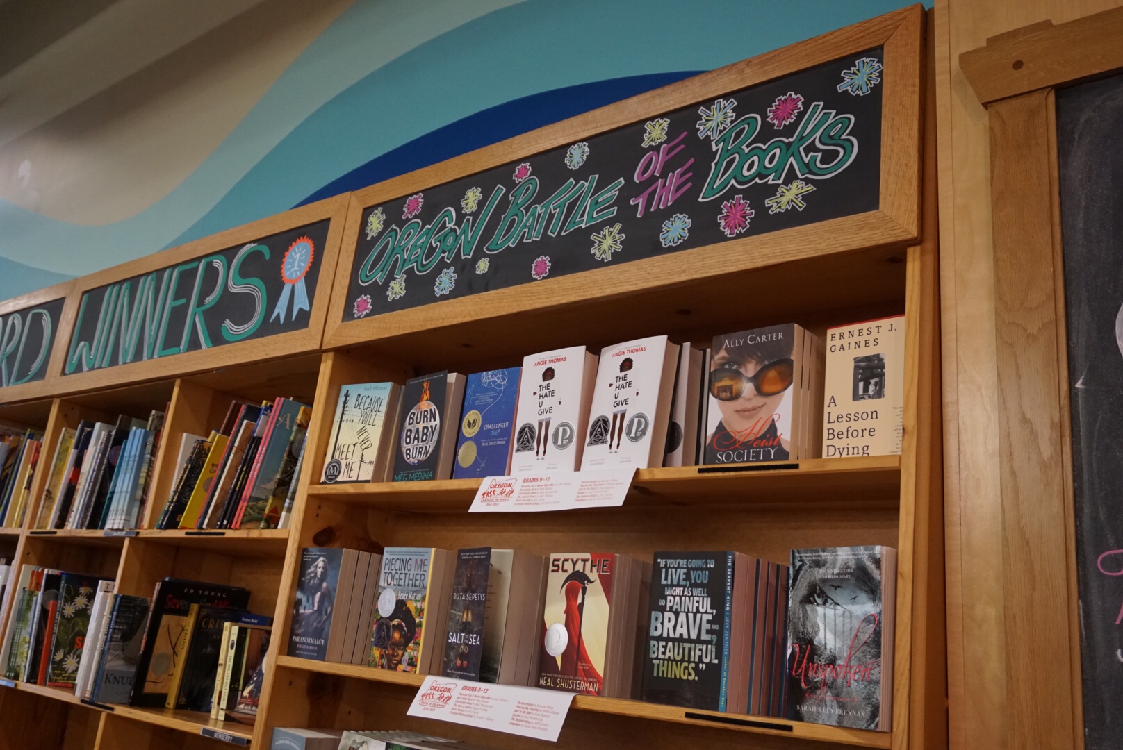 Oregon Battle of the booksというセクションがあり、子どもたちが、学校のイベントで使う本が陳列されてます。