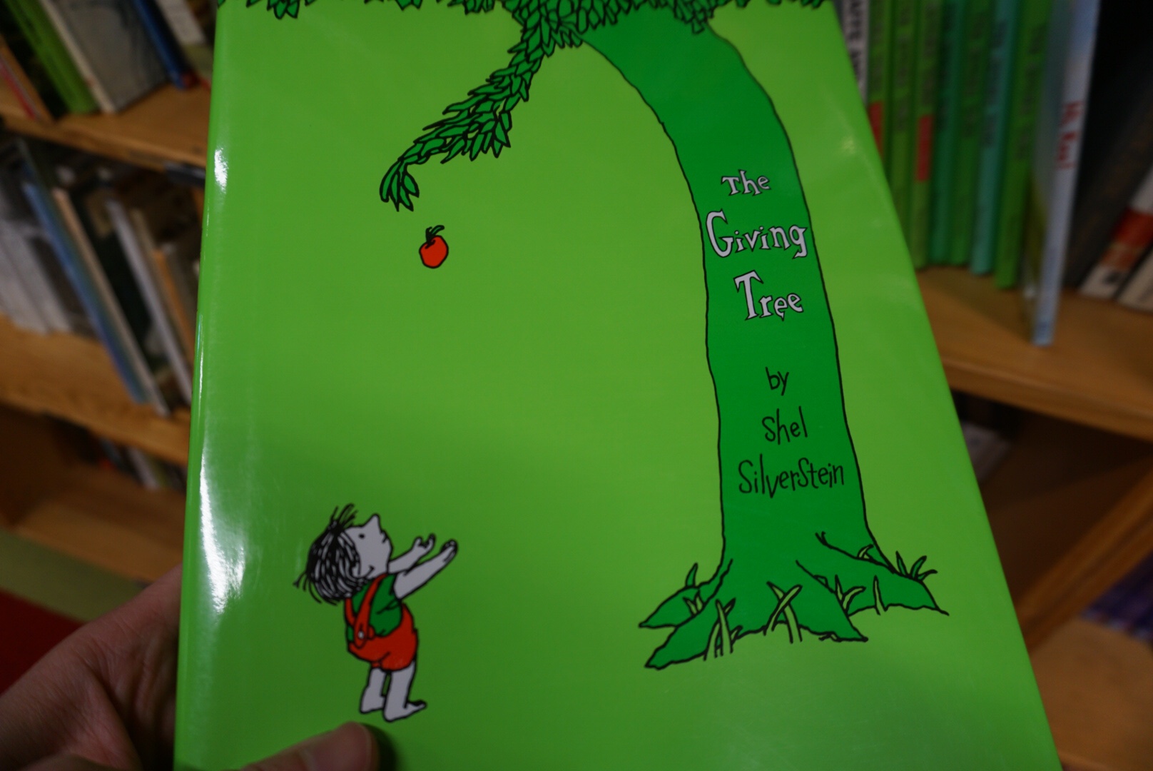 ちなみに、英語の本で初心者向けにオススメは、このgiving treeとかは英語がまだまだな子どもにいいですよね。