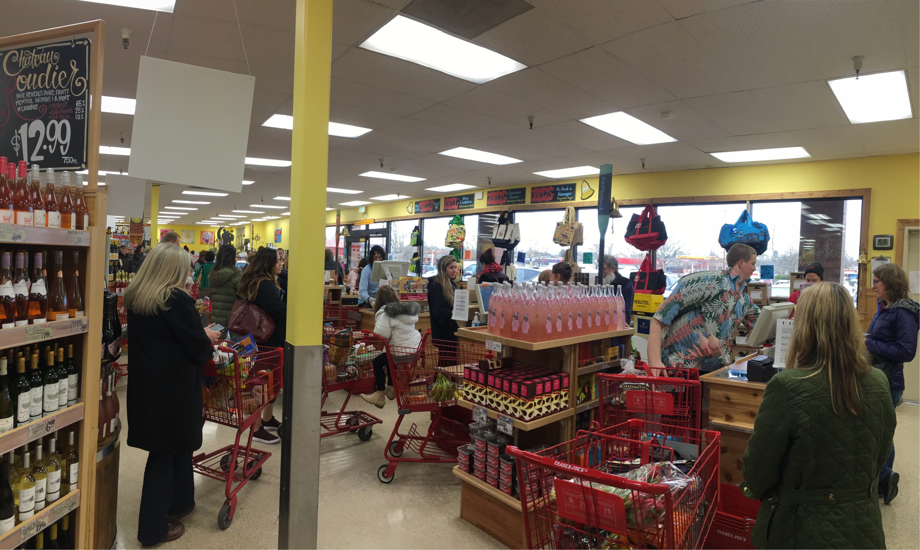 雪が降る前で、たくさんの人がレジに並んでいた。