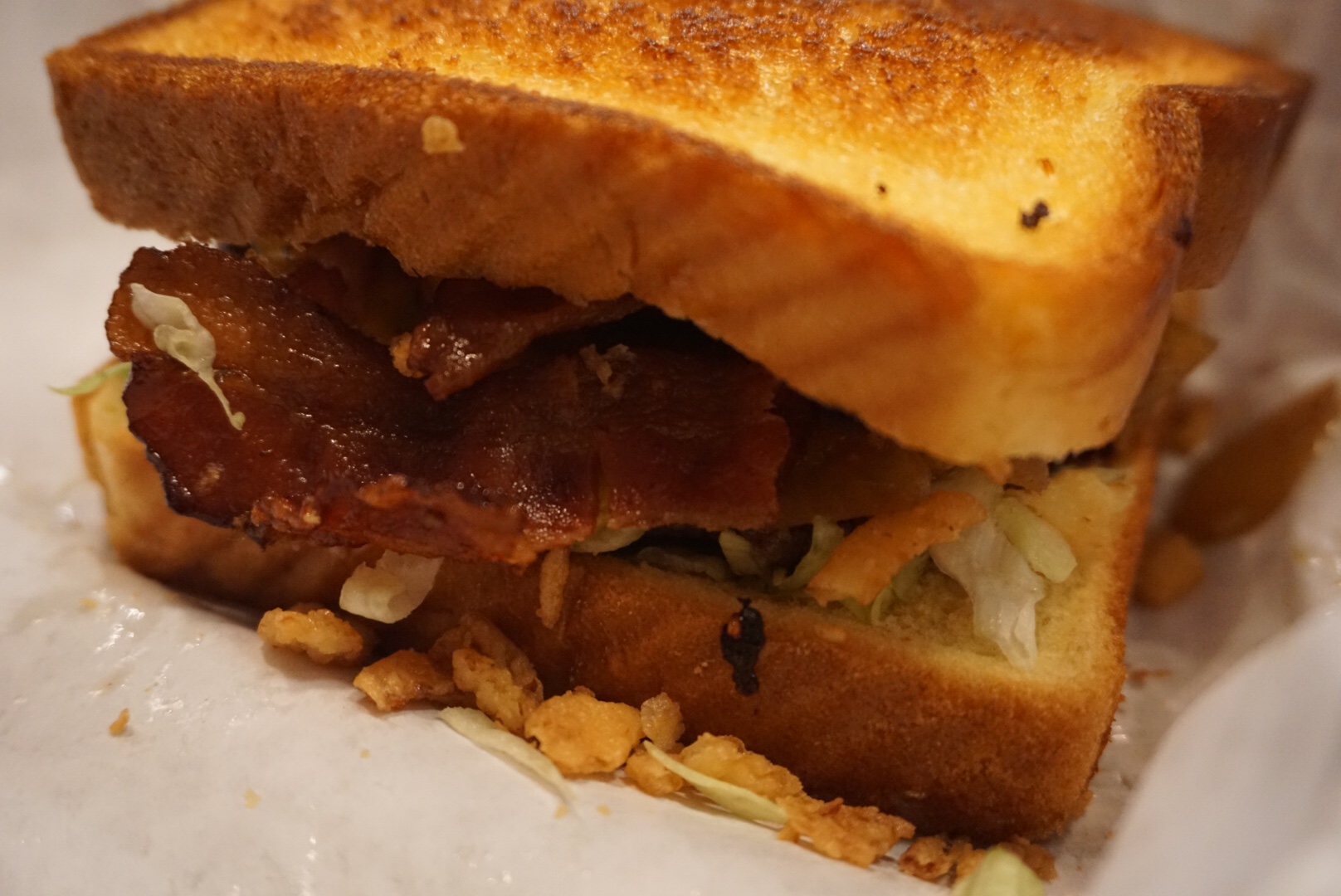 ベーコンがしょっぱさを、ソースが甘さを演出。