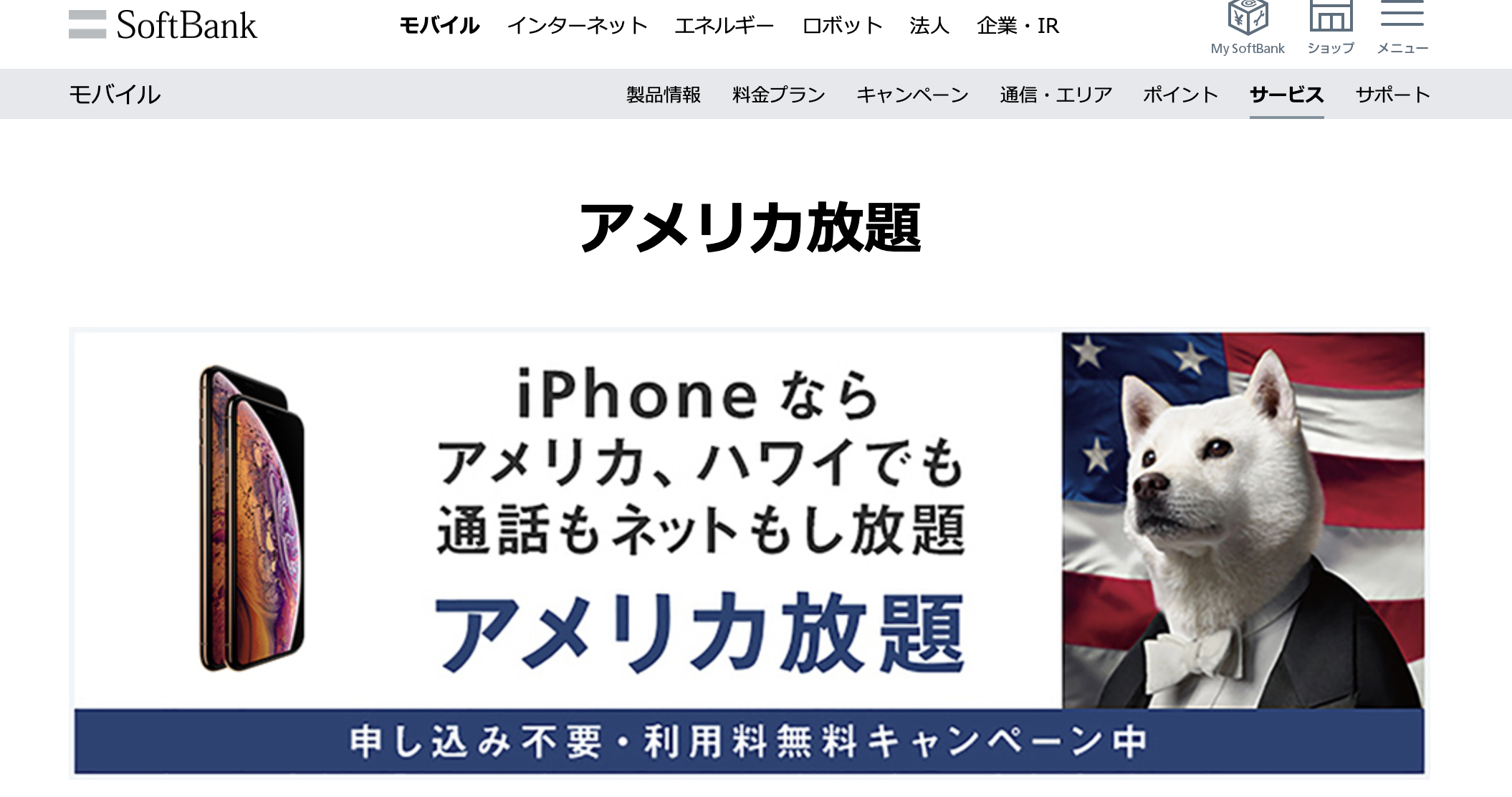 その時に、ソフトバンク携帯のアメリカ放題というネットプランが使えなかったので、解決策を掲載しておきます。