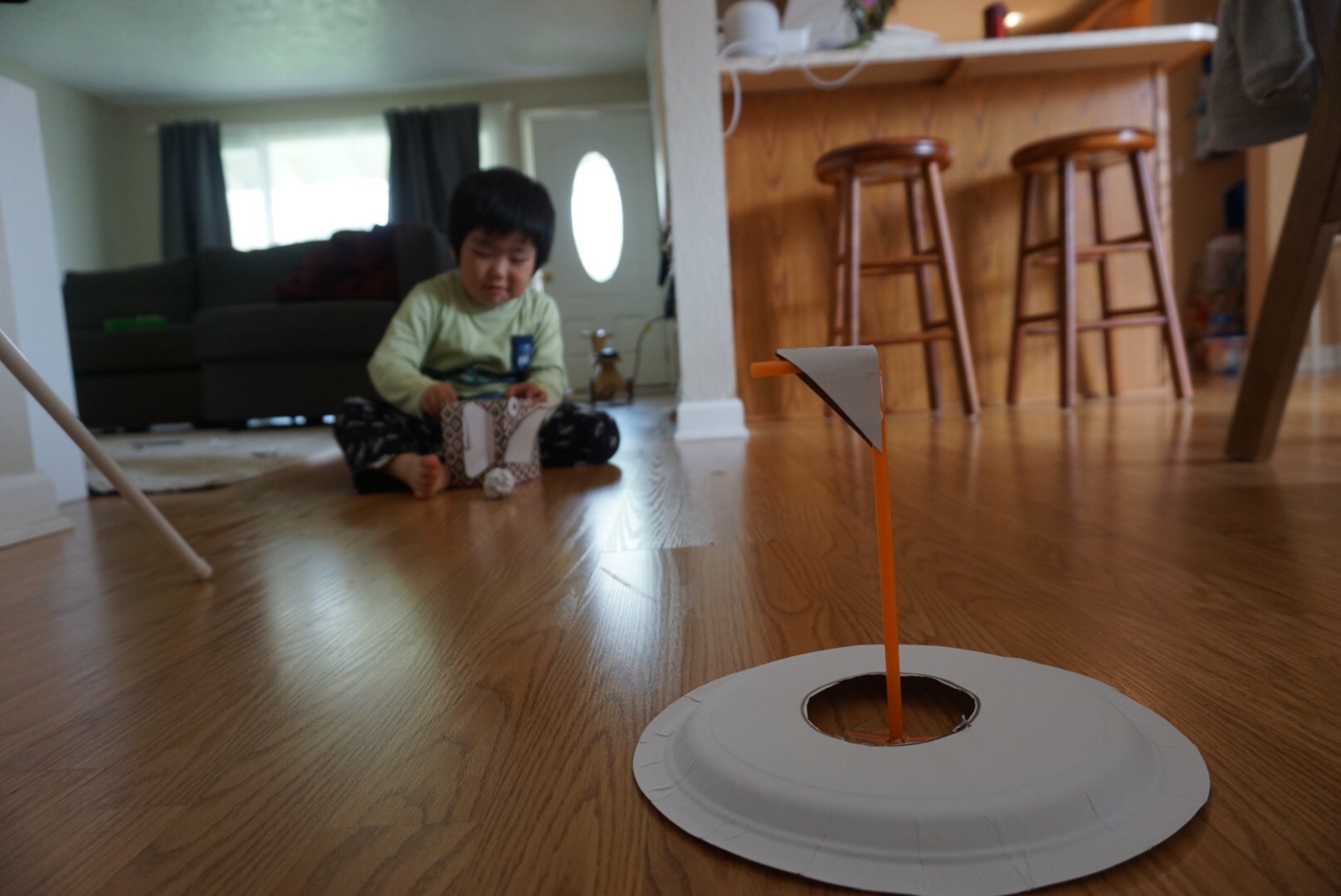 ゴルフボールは、アルミホイルを丸めたものを使いました。