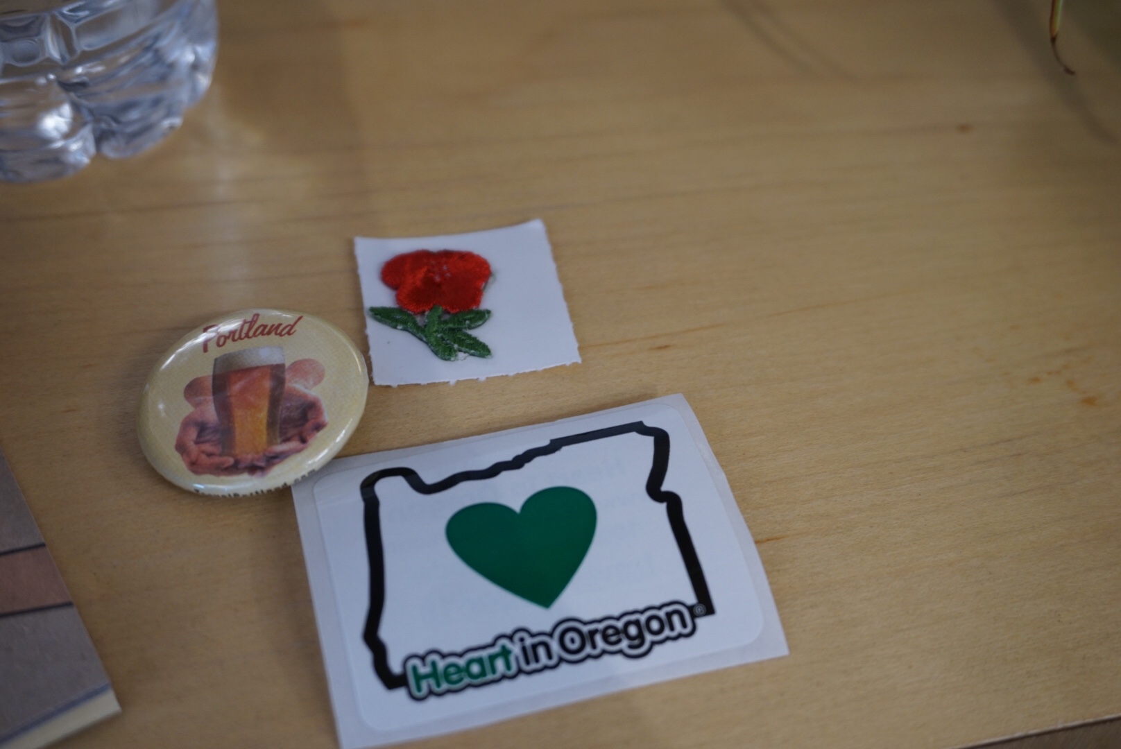 あとは、バラのシール、オレゴンのシール、ビールバッジなど。