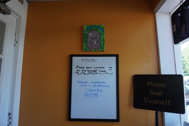 お店に入ると、キレイなテーブルにご自由に座ってください、とあります。