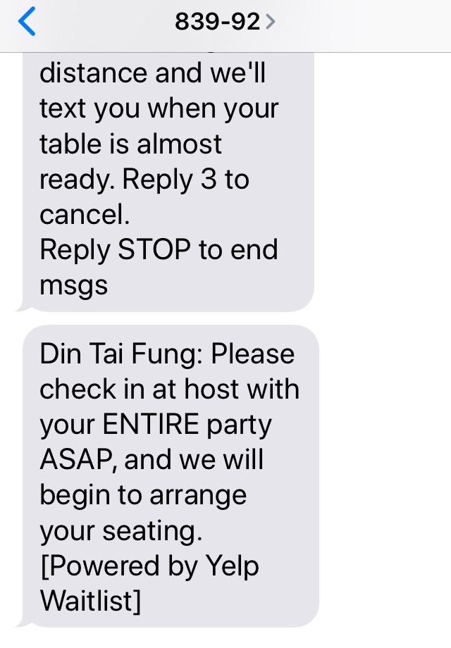 テキストが来たら、慌てずにレストランに向かいましょう。