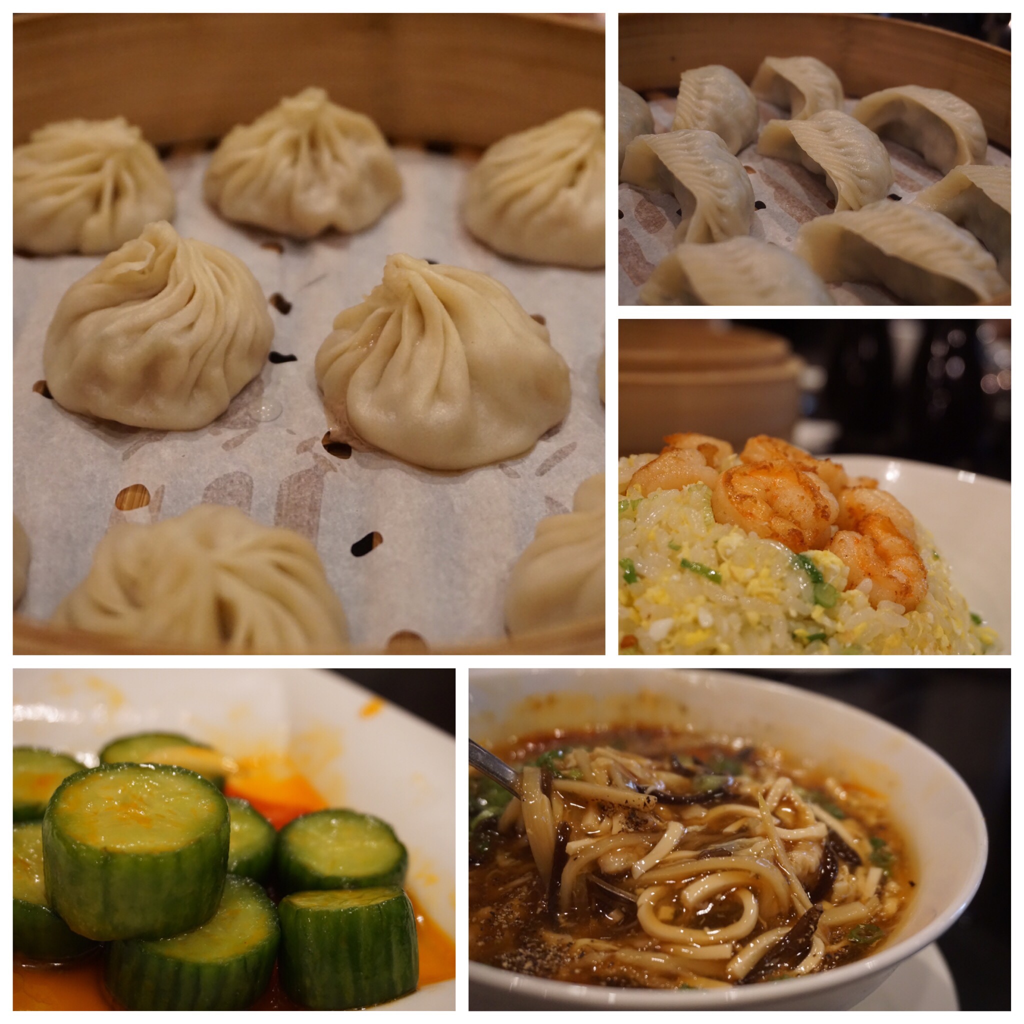 小籠包はもちろんのこと、餃子とエビ炒飯、スープときゅうりも頼みました。