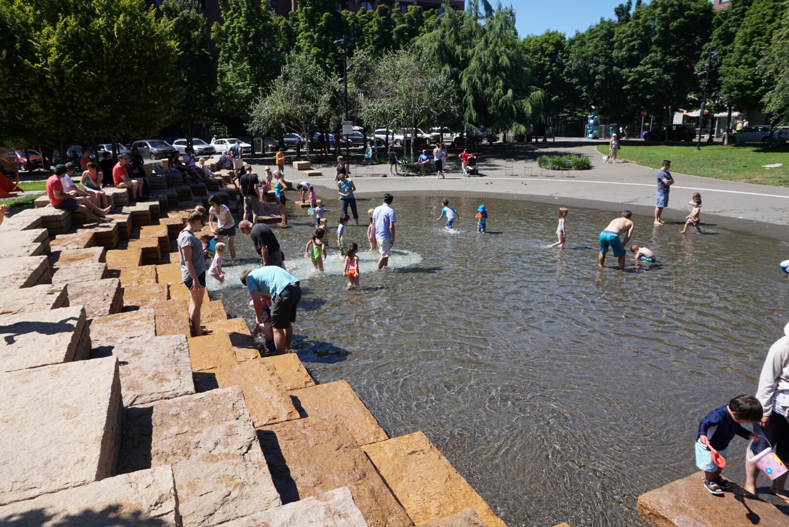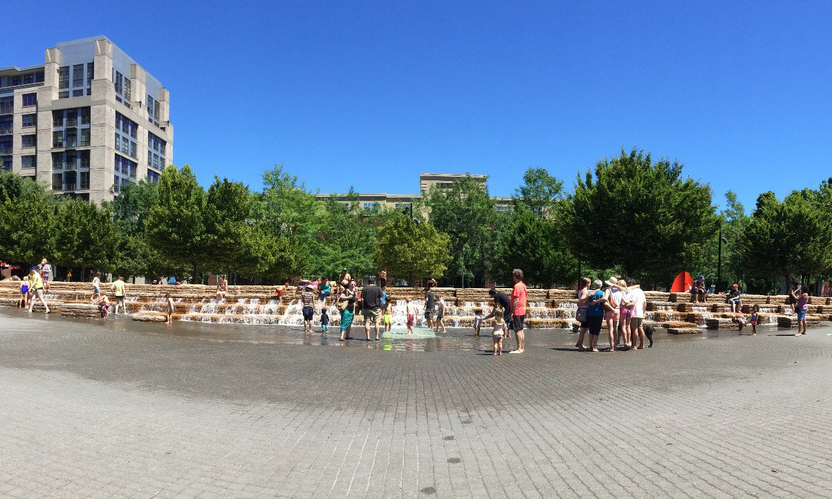 こちらは、パールディストリクトにある公園です。水遊び場が大人気!
