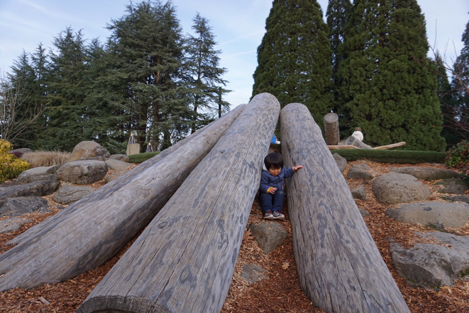 でっかい人口の遊具があるのではなく、木の丸太がデン!と置かれています。
