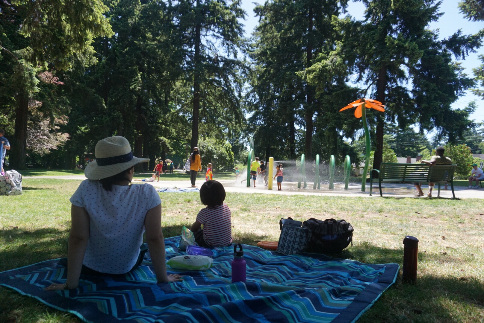 大人は、日かげでシートを敷いてゆっくりしつつ、子供を遊ばせておくのもいいでしょう。大人にとっては日かげがあるのがうれしい。
