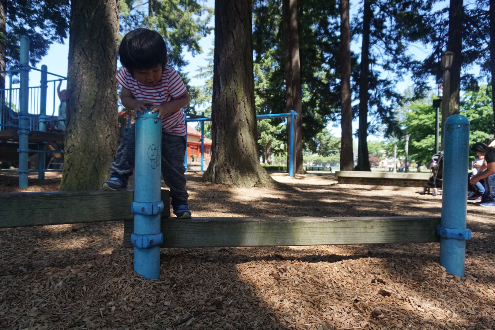 トイレもしっかりありますね。なんと行っても、遊具のある場所ほぼ全体が日かげとなっておりまして、おとなの強力なサポーターとなってくれています。