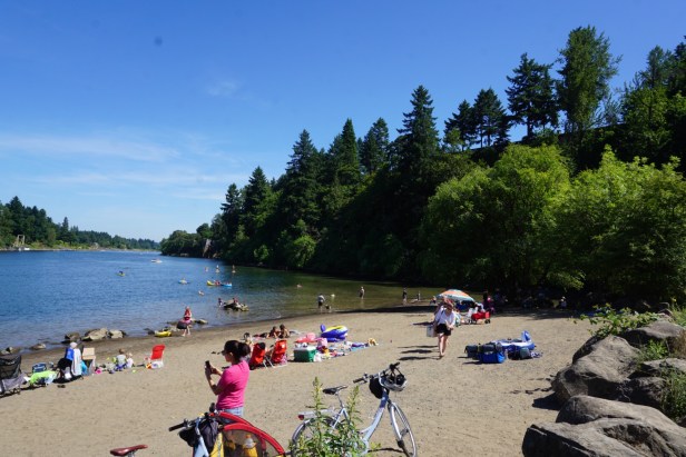 公園にあるウィラメット川も砂で濁ってはいますが、キャノンビーチ程は冷たくなくて、息子もガンガン入っていました。