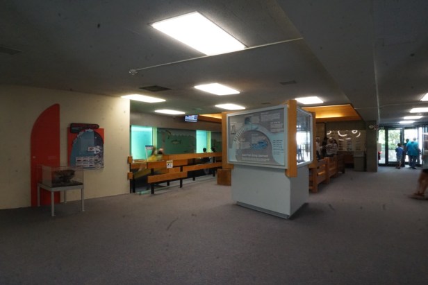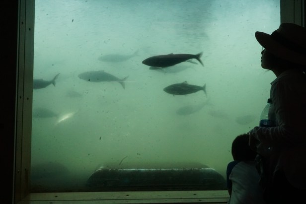 建物の地下にはこんな窓もあり、魚が流れに逆らう姿が見られます。