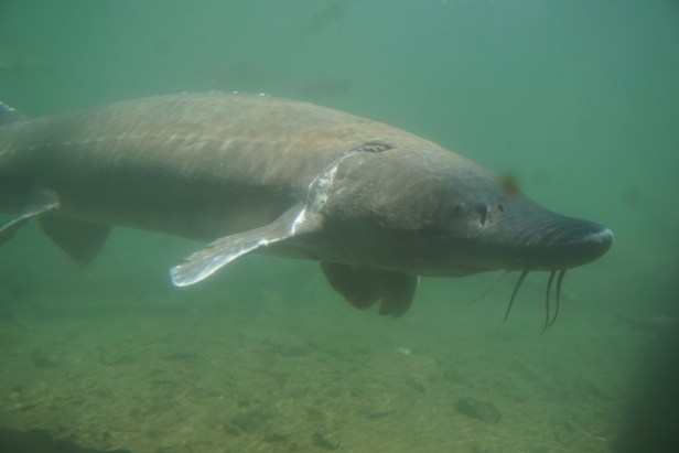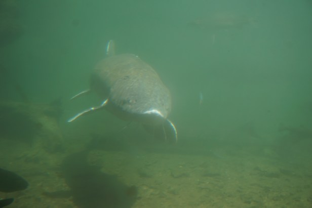 ダムの横にはチョウザメを飼育する場所がありそこの池には大きなチョウザメがみられます!