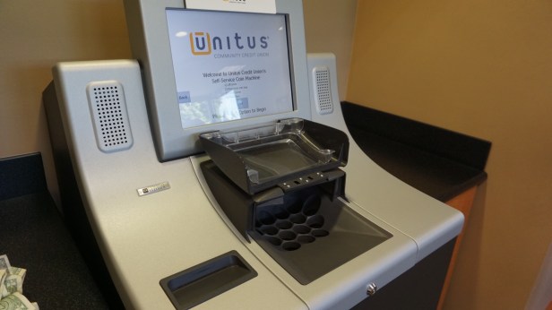 Unitus Credit Unionでは口座を持っていると、無料でコインを紙幣に交換してくれて便利です。