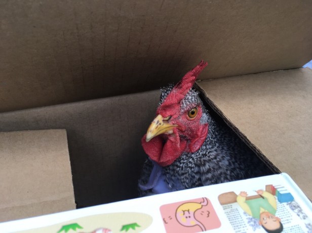 ピヨ(ニワトリ)がコケコッコーと朝早く鳴くため、苦渋の決断をしました。