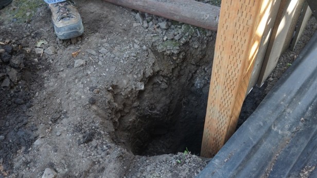 「この写真の通りなら、コンクリートを引っこ抜いて、柱を刺すだけだから、$500でやるぜ」とのこと。
