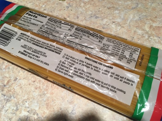 まずは、パスタを取り出します。当たり前ですけど。袋に入ったまま入れるわけないですよね。。。
