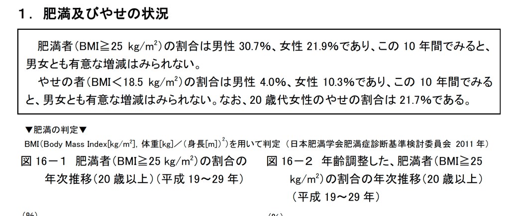すると、日本では過体重となるBMI25以上は男性で3割、女性で2割。