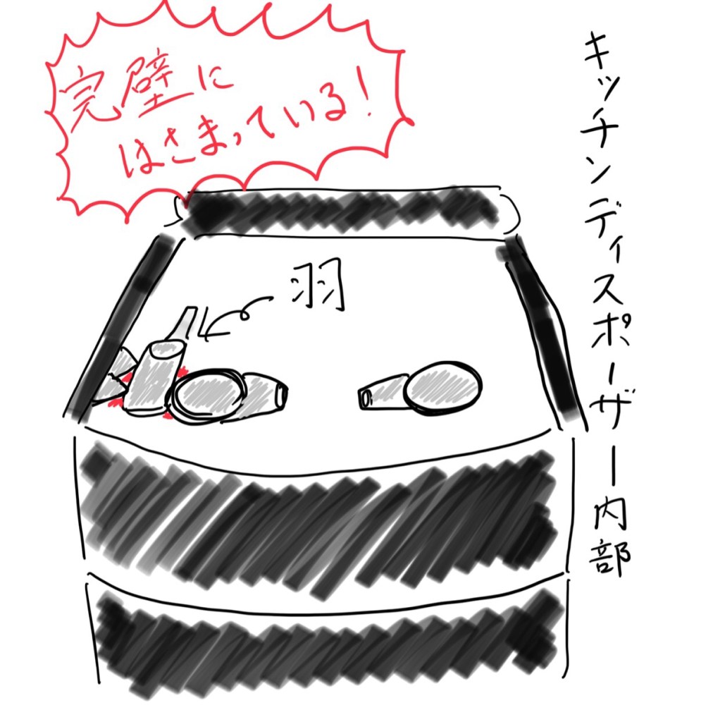 妻のせいで、羽がディスポーザーに挟まっているのに、何でこっちがこんな必死で羽を取ろうとして、妻はソファで横になってるんだ!?と。