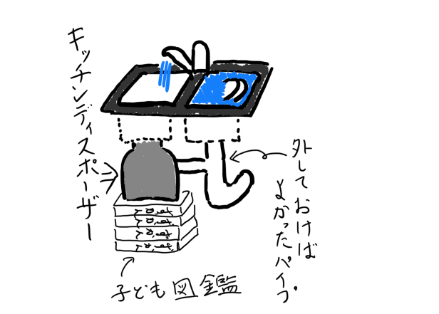 今思えば、とりあえずディスポーザーをシンクに繋げ直してから、パイプを外せばよかったのですが。