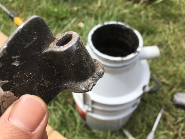 棒を底に挿して、ガチャガチャ動かすと、緩んで解決!