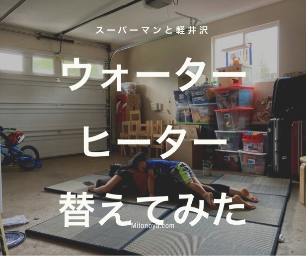 [省エネ②]断熱材に加えて、ウォーターヒーター(給湯器)も替えたんです。こちらも三社から見積もりとって、1850ドルを出費。スーパーマンが来てくれて、我が家のガレージは軽井沢のように涼しくなったとさ。