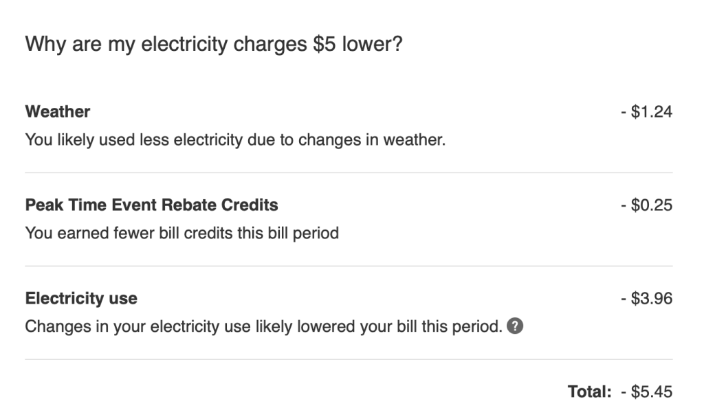 天気のせいで2ドル多くなっているから、電気使用量自体は本来は3ドル下がっているはずだった、と。