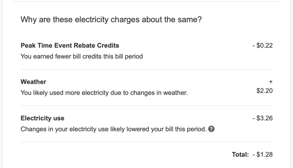 Peak Time Rebateは申し込んでおくと、暑い日などにお知らせが来て、電気の節約に貢献すると返金されるシステムです。