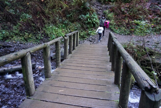滝にたどり着くまでに、こういう橋を何度も渡ります。