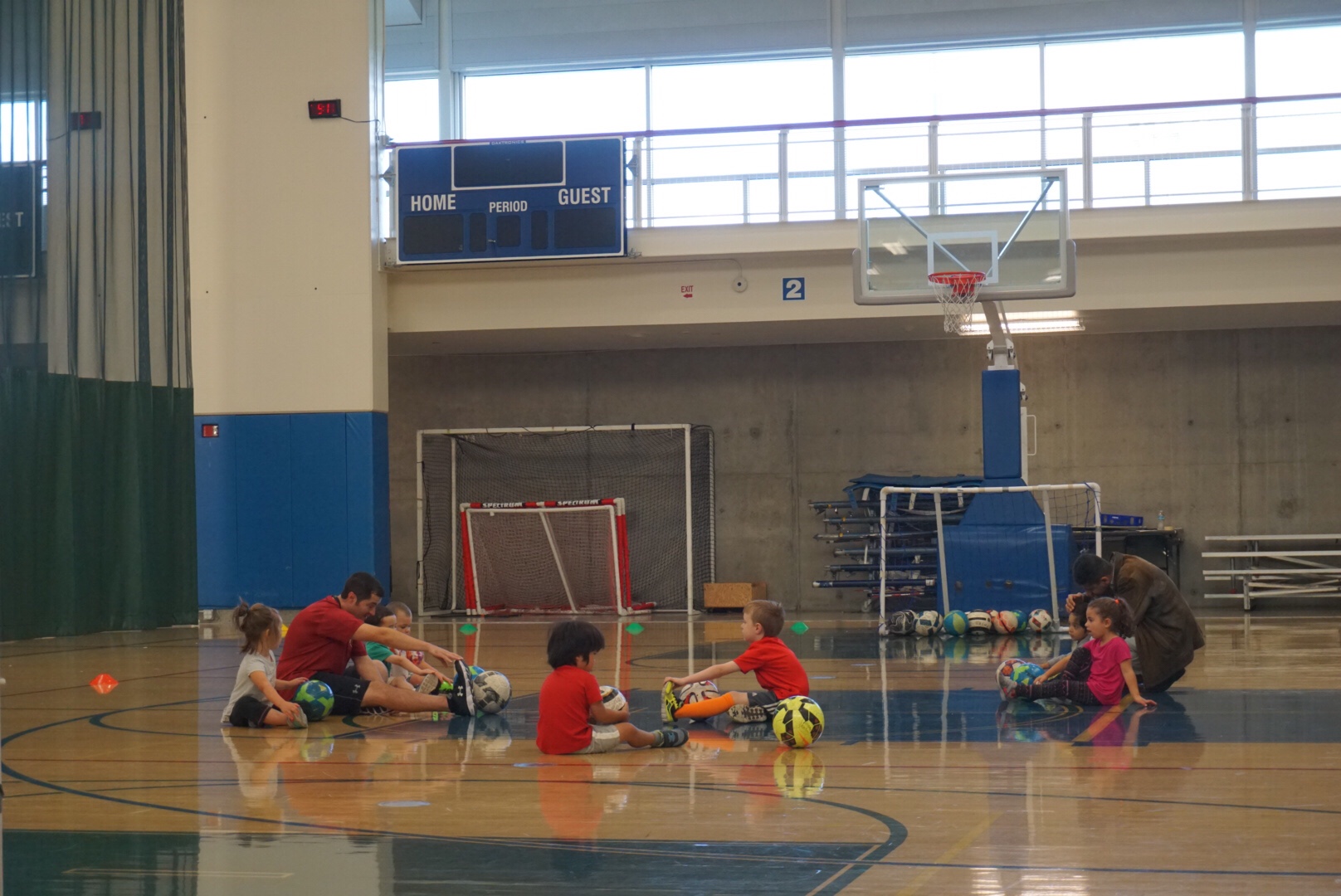サッカーが終わってからは、コーチの方はバスケットボールの準備をしていたので、次はバスケのコーチをやるのでしょう。コーチの方も小さい子を相手に大変です。