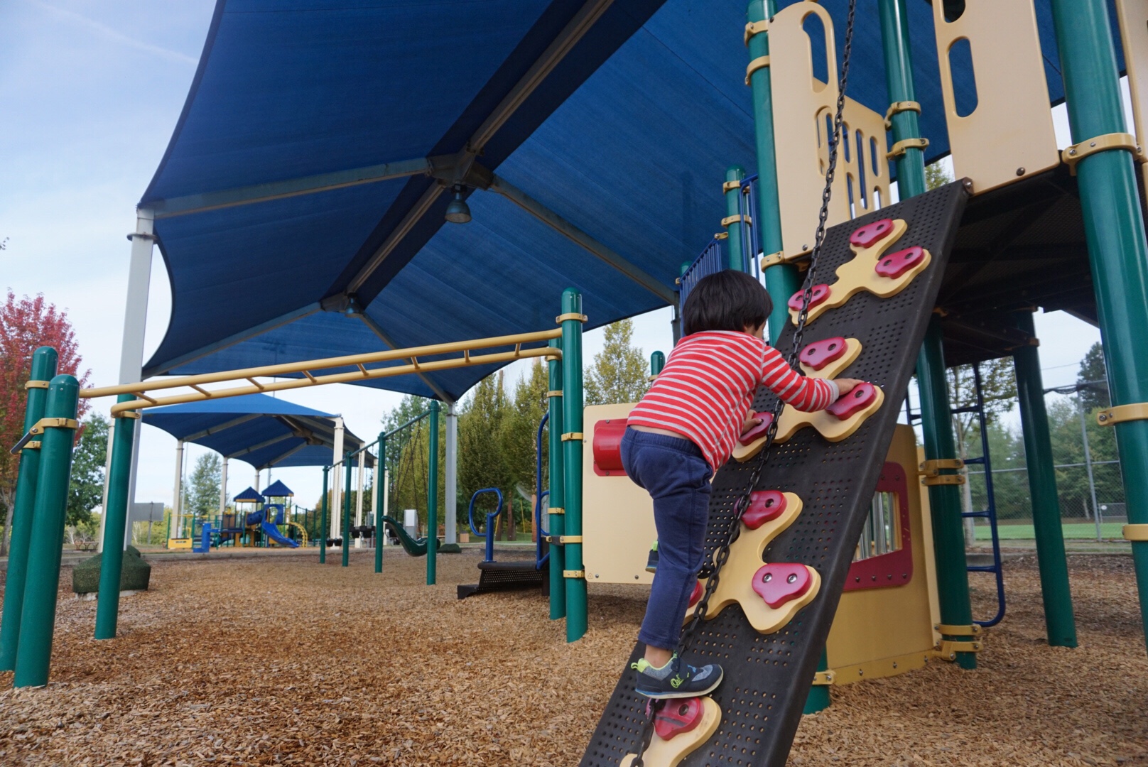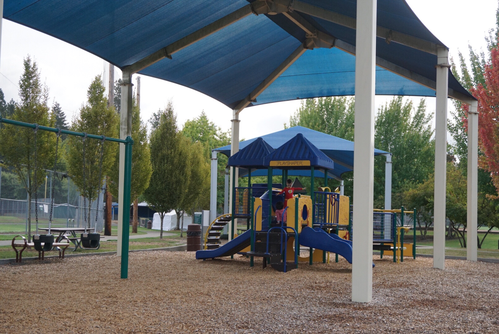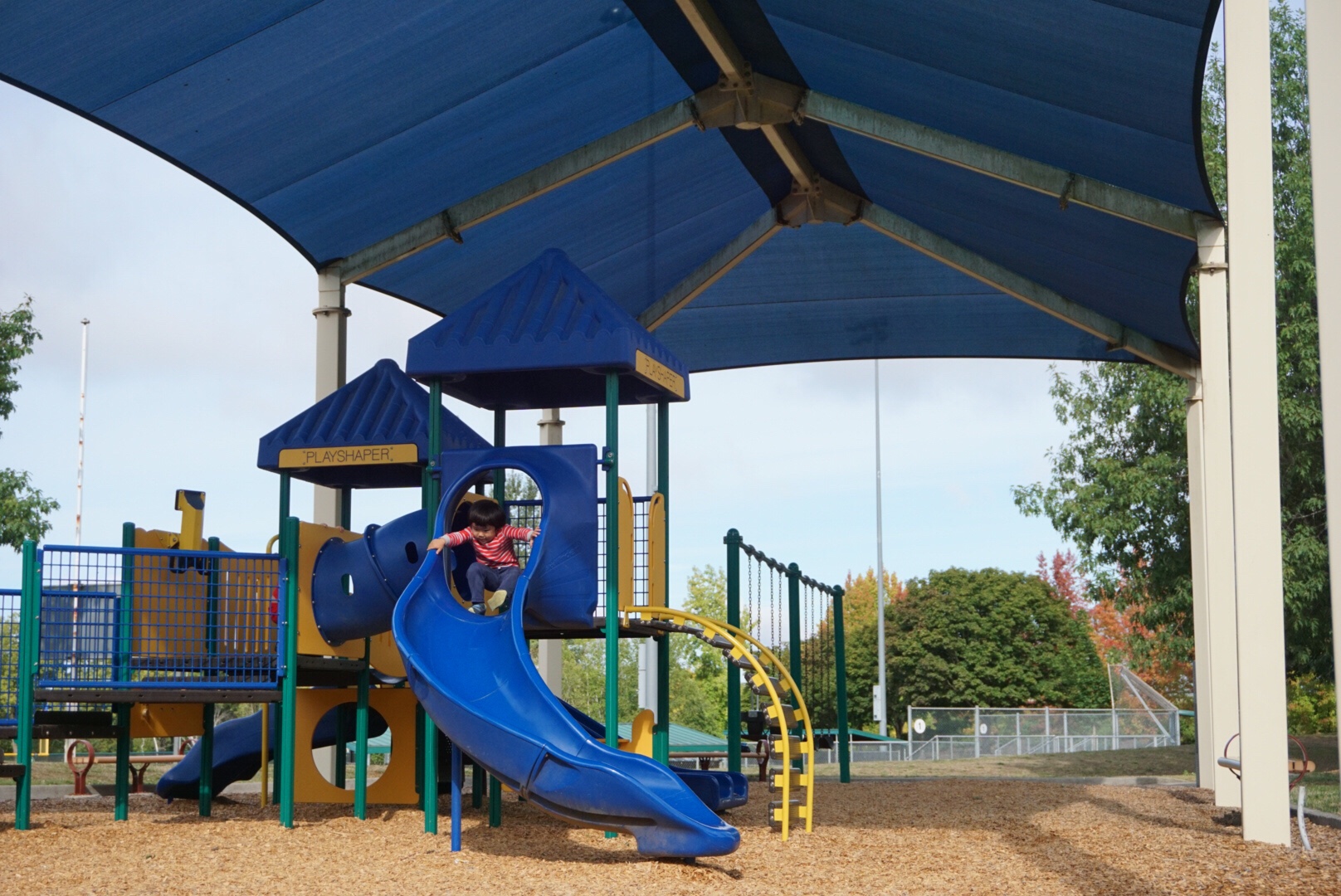 こちらMurrayのTHPRDですが、こういう屋根が付いている公園もあるんですよね。雨が降っても遊べますし、強い日差しの日でも、影ができています。
