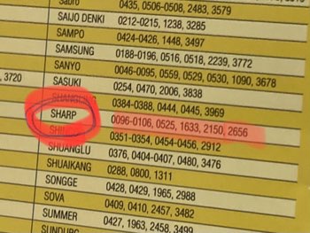 Sharpさんの場合は、以下の数字のどれかを入力する必要があります。