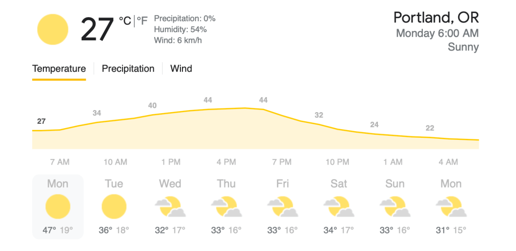 オレゴン州ポートランド周辺は、熱波でものすごい暑さとなっております。
