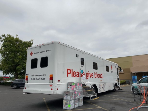 フレッドマイヤーの駐車場に停められていた献血カー。