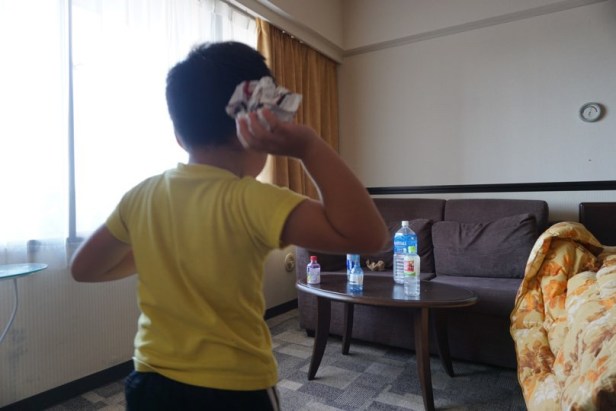 その代わりに、小さいペットボトルを隠すゲームをやっていました。