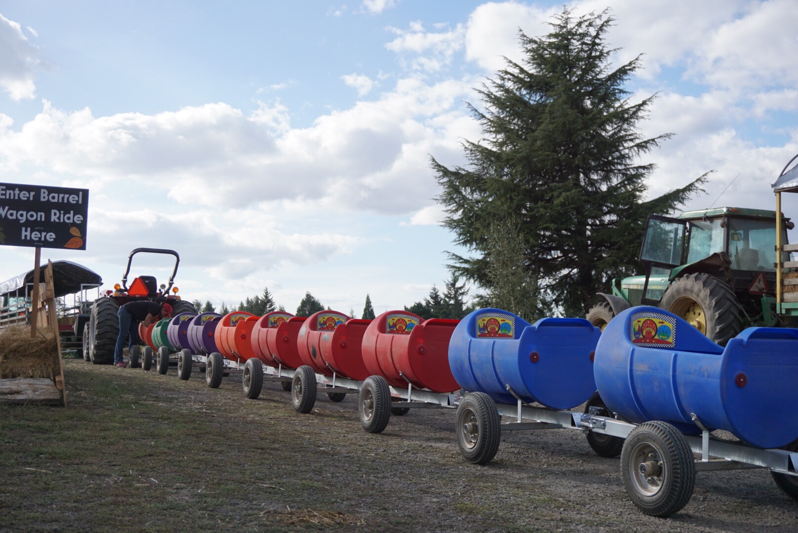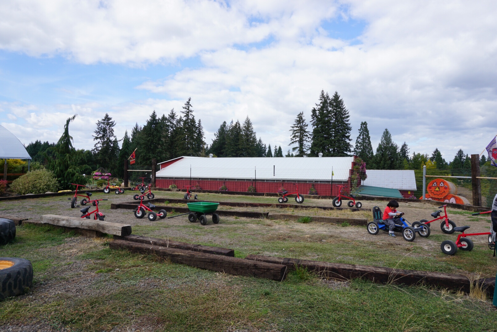 ただ、アメリカのパンプキンパッチというと、パンプキンの収穫がメインではなく、トラックに乗ったり、滑り台を滑ったりと、小さい子の遊園地的な場所となっております。
