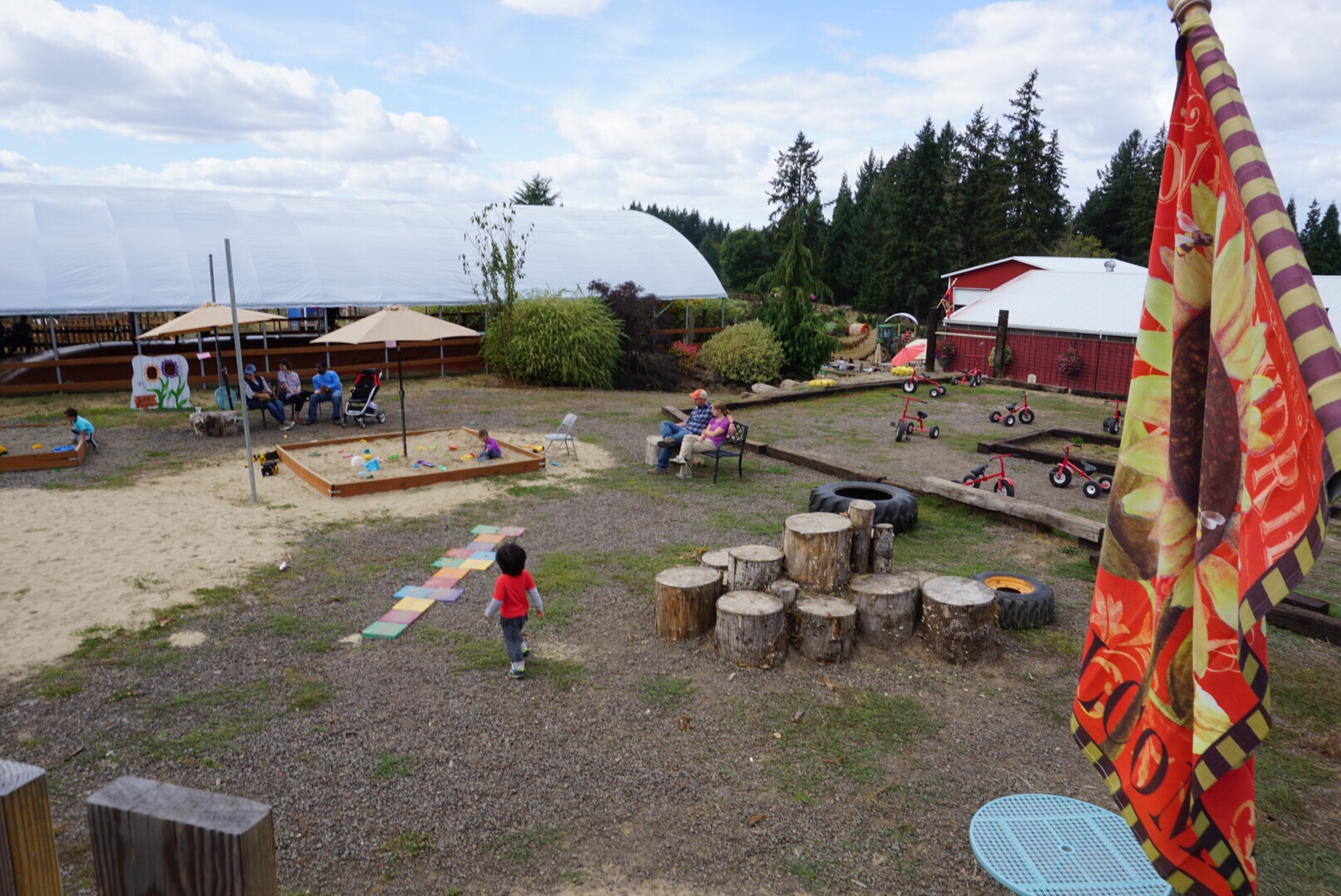 ちびっこスペースもあり、そこでは、三輪車やら砂場遊びやらができます。