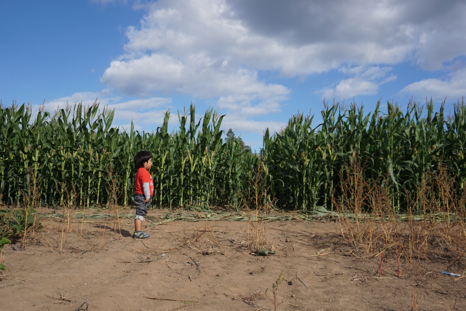 たどり着いたのが、コーン畑の迷路。そこらへんにはたくさんのパンプキンが。