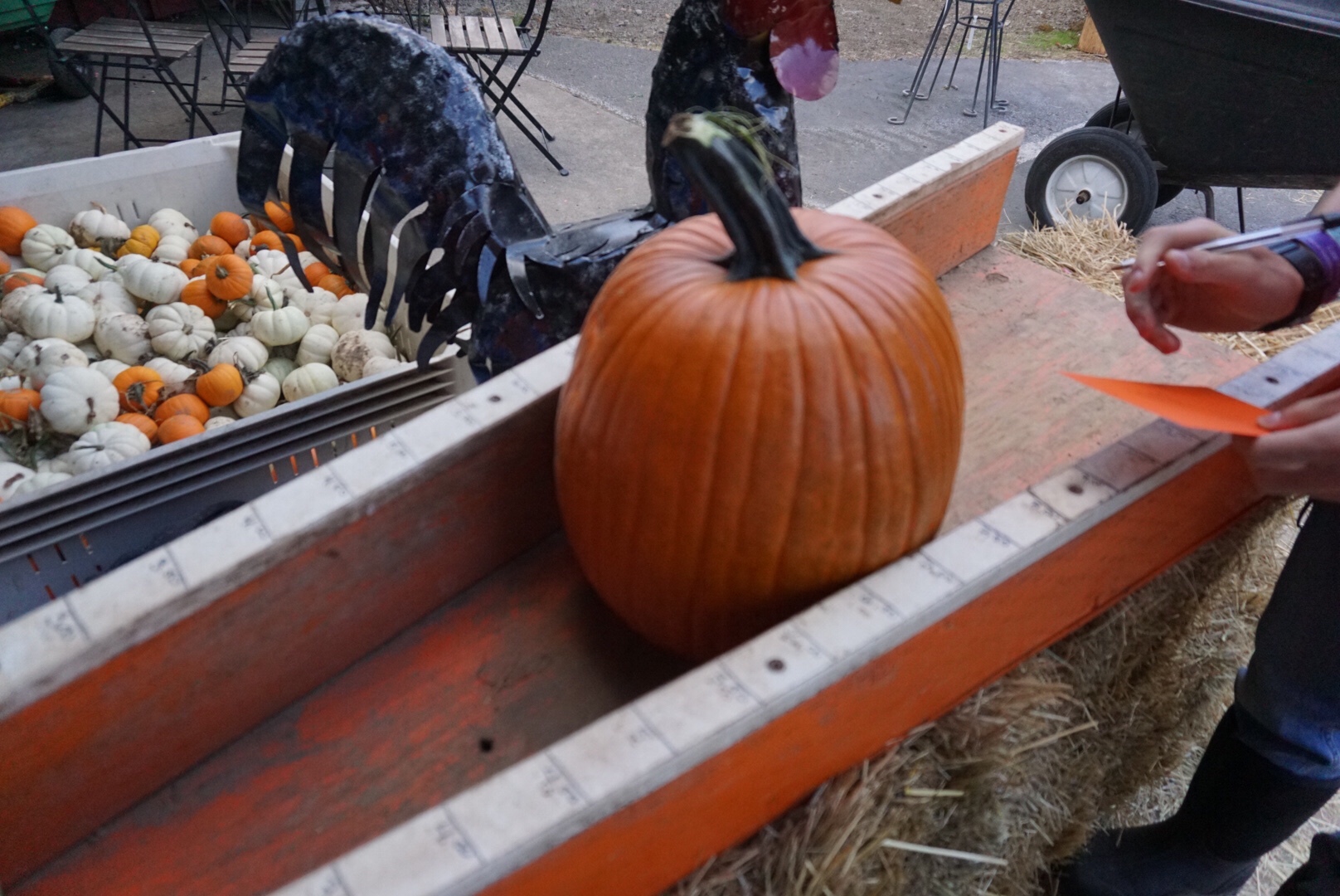 でも、お店の入り口付近にもっといい形をしたパンプキンがたくさん売りに出されていました。