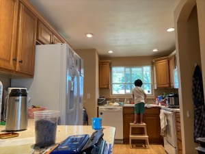 私が足でキッチンのドアを閉めたら、息子も足でドアを閉めるようになります。