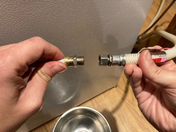 アダプター無しで、新しい冷蔵庫の配水管を繋げてみよう!という結論に。
