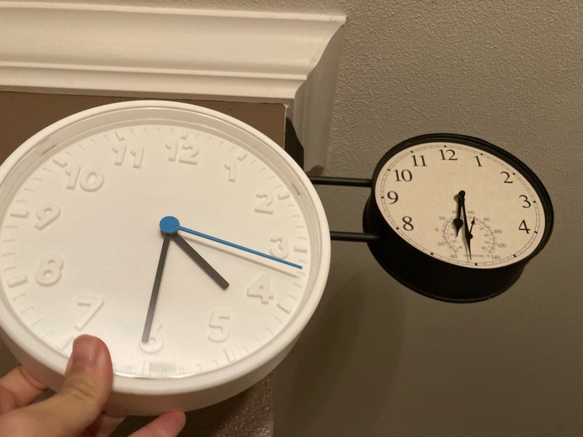 今までは、当日の朝に時計の針をずらしていたのですが、2022年の3月から前日には時計の針をずらしています。