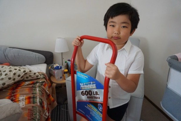 よし、とポケモンカードで元気が回復した息子が鼻息を荒げながら、ハンドトラックを持ち上げます。