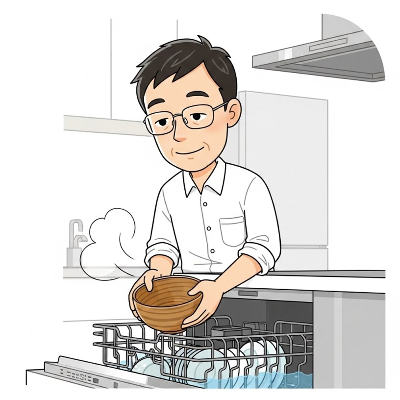どうして木のおわんは食洗機で洗えないの!と食洗機に文句を言っていました。